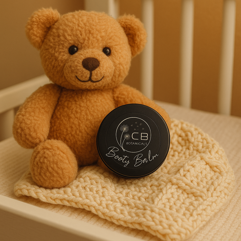 Hello fanny fairy! Your baby’s skin is so new and innocent that it deserves only the safest ingredients. This balm contains gentle, hydrating herbs like chickweed, calendula, and marshmallow root. Booty balm soothes skin, calms irritation, is super light and absorbs quickly. This can be used on cradle cap and sore cracked nipples as well. These herbs are known for supporting skin conditions, making this product an all purpose must have for the diaper bag!